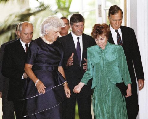 Михаил Полторанин (с 1990 по 1992 год министр печати и информации России) считает, что западные спецслужбы первым делом сосредоточили свое внимание на первой леди. В те времена всей стране было известно, что президент, принимая решения, советуется с женой. Во время заграничных визитов встречающая сторона всегда устраивала для Раисы Максимовны впечатляющую программу: возили по дорогим бутикам, покупали бриллианты, естественно «от чистого сердца».