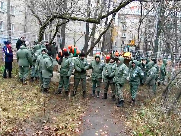 По словам местного активиста Ивана Рожкова, в Кунцево идет настоящая война. «Приехало 5 полицейских автозаков. Охрана и полиция оцепили сквер живой цепью и оттеснили его защитников. Две героические женщины, оказавшиеся внутри оцепления - Елена и Виктория - легли под ковш экскаватора, не давая ему начать строительные работы. Только приехавшему наряду полиции удалось оттащить их от техники. Елену увезли на скорой, а Викторию бросили в автозак»,- пишет активист в социальный сетях.